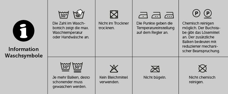 • Nicht zu heiß waschen: maximal 30°C - bitte Pflegehinweis der Kleidung beachten
